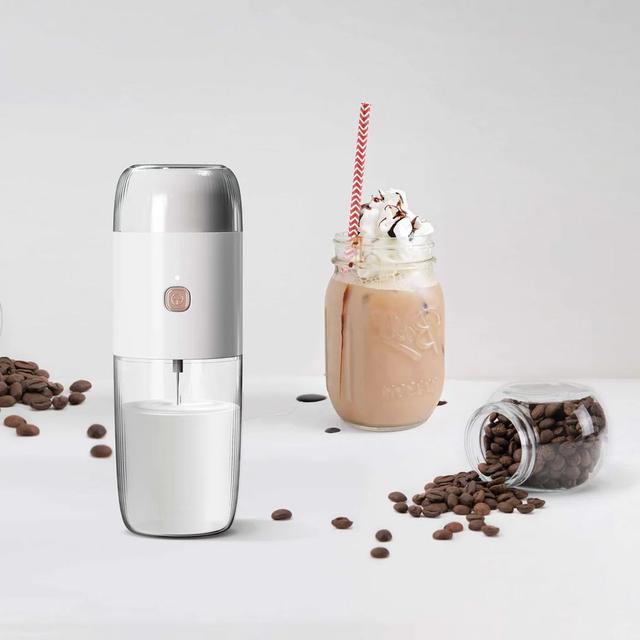 New dual design: the upper part grinds coffee beans, and the lower part produces milk foam.