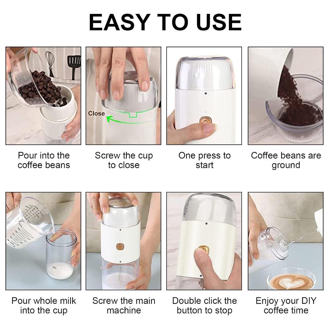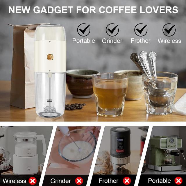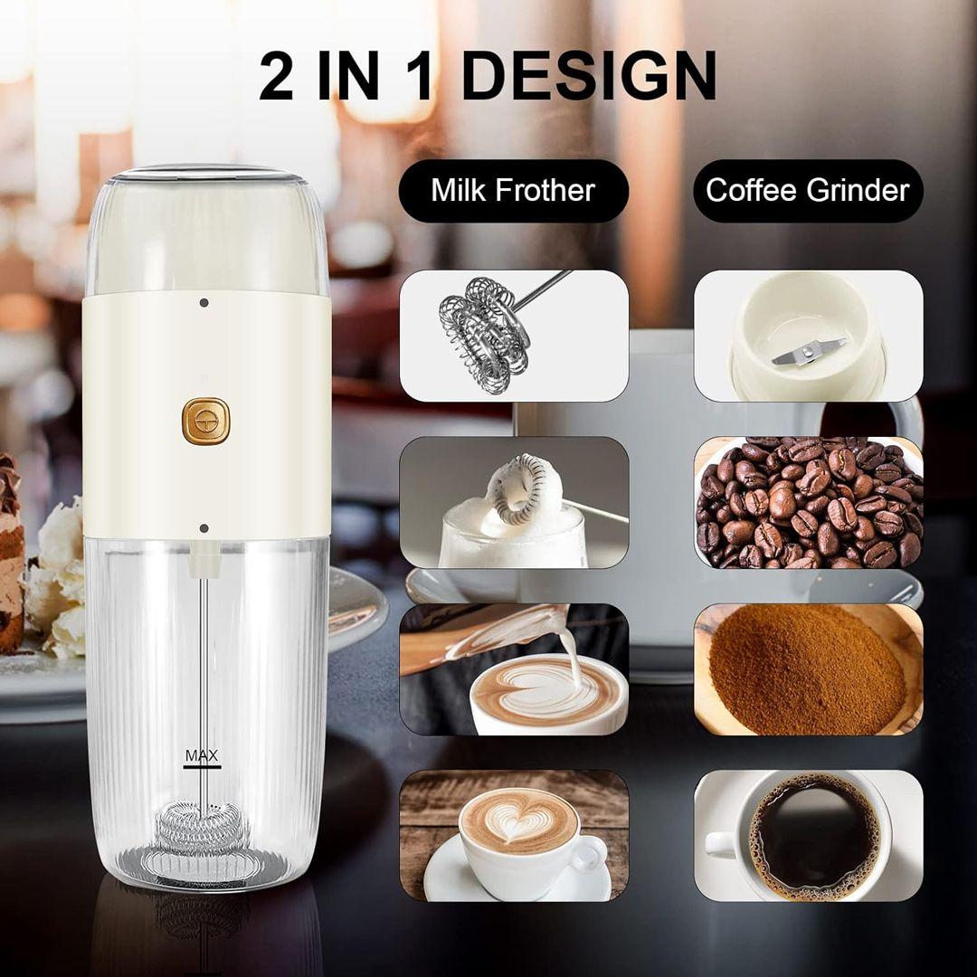 LePresso LPMFGRWH 2 in 1 Portable Milk Frother and Coffee Grinder