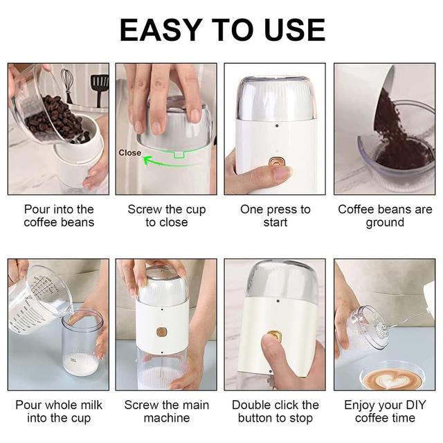 The ideal, highly efficient milk frother from Libreso offers you a small and portable frother for making milk foam and for grinding coffee beans as well. The milk frother is distinguished by its simple, small and practical design for use, and the upper part also includes a coffee grinder for grinding beans.