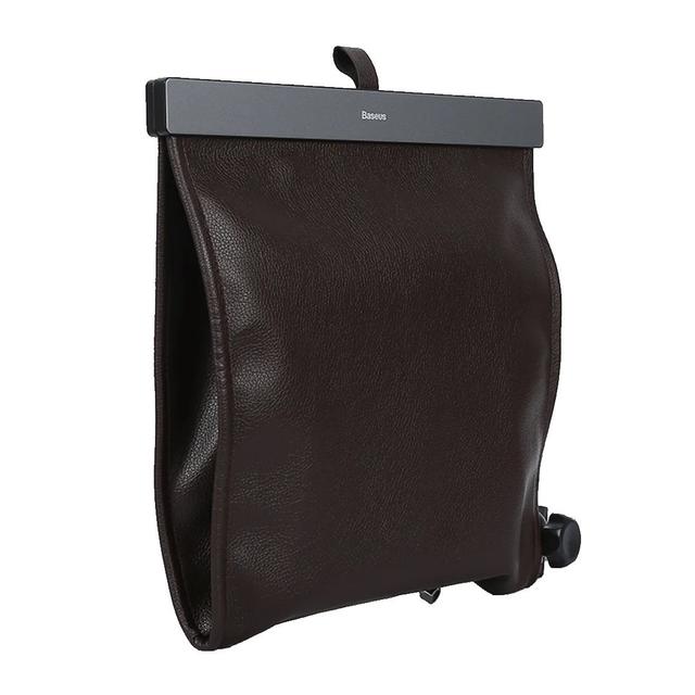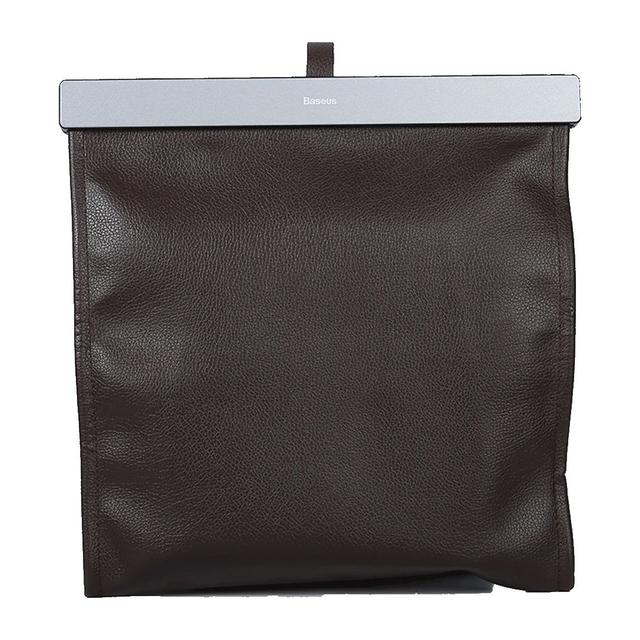 Baseus Car Backseat Trash Bag comes with a simple design. It is made of high-quality leather and a matte aluminum opening. It works magnetically to open and close. It is attached to the back seat of the car and helps keep your car clean and free of any clutter or trash.