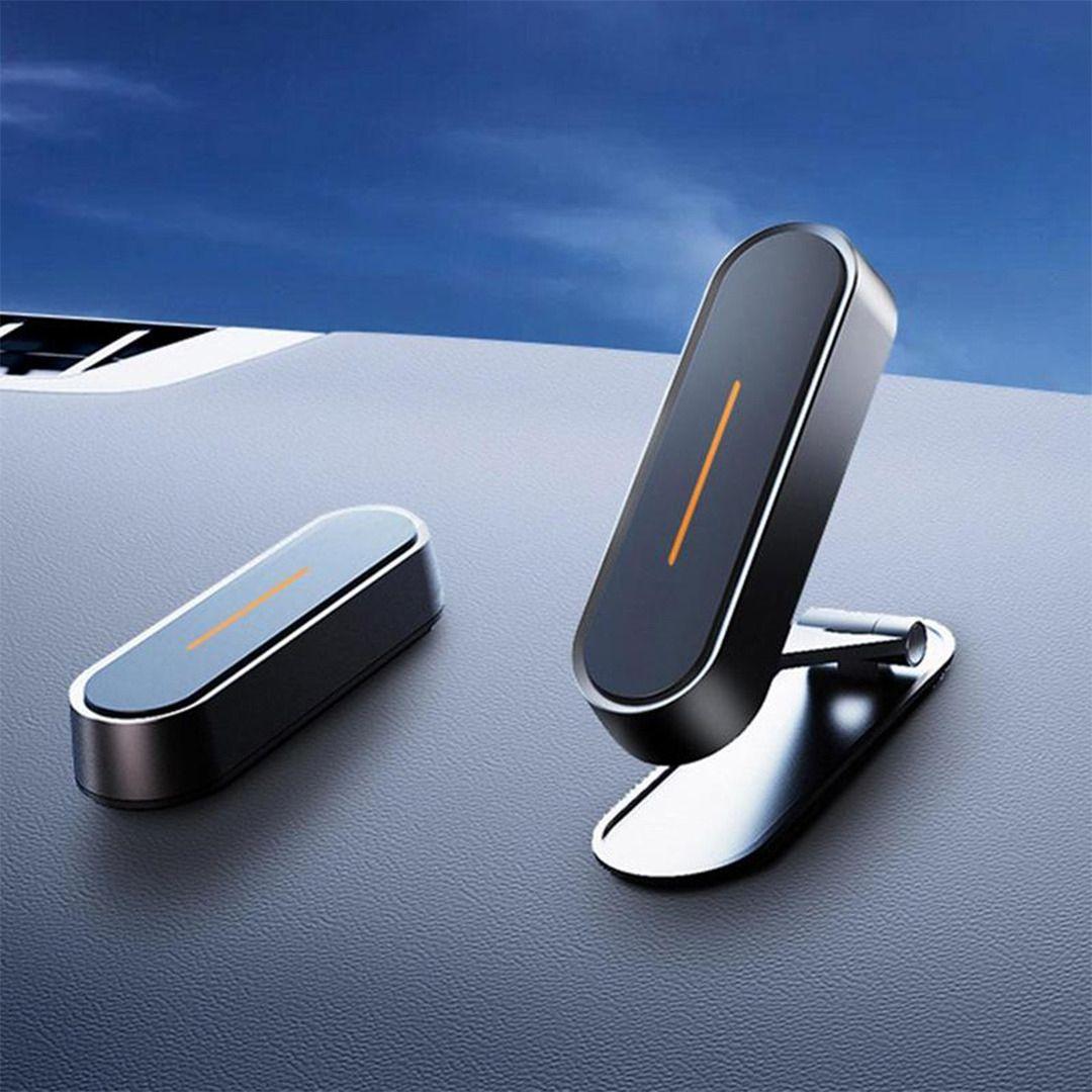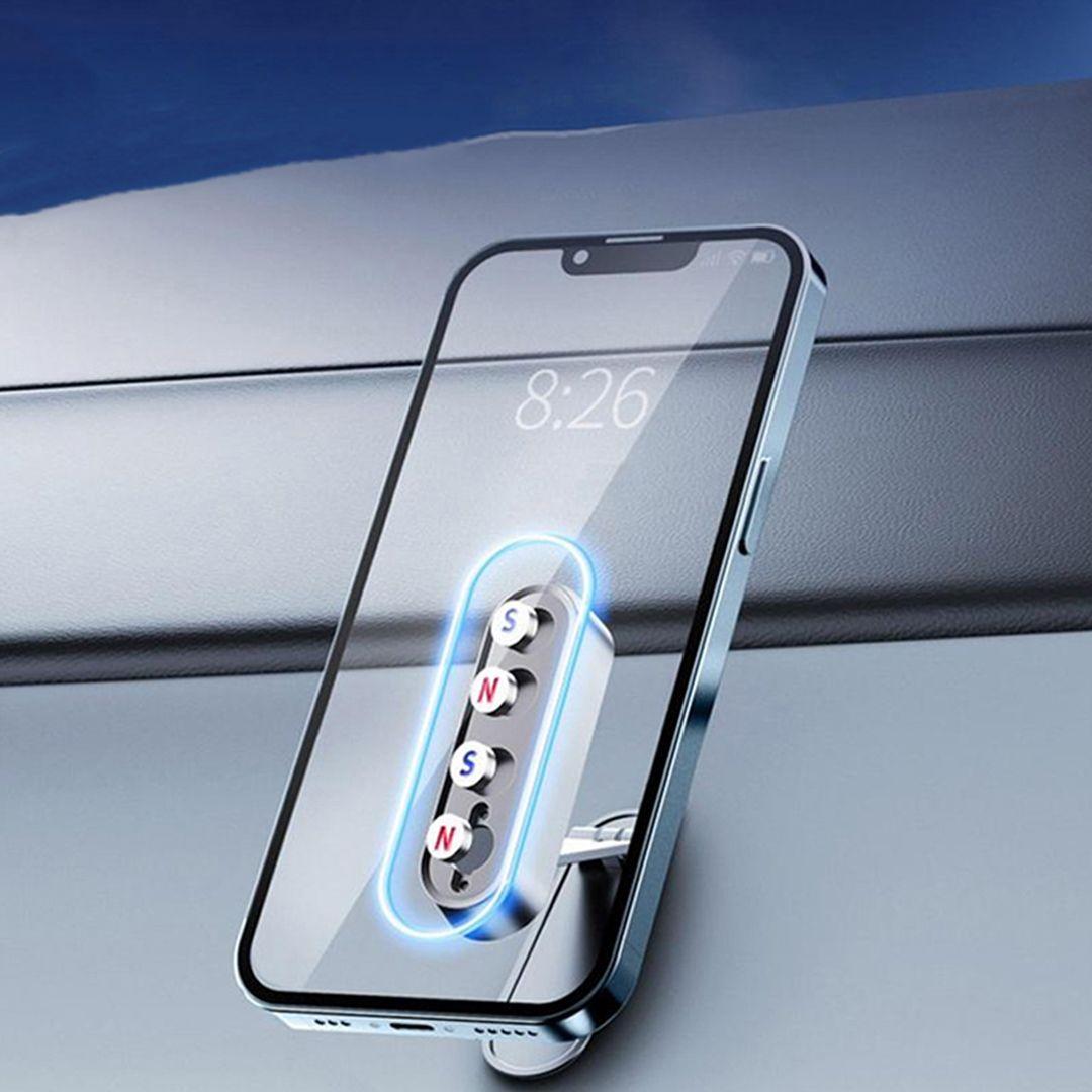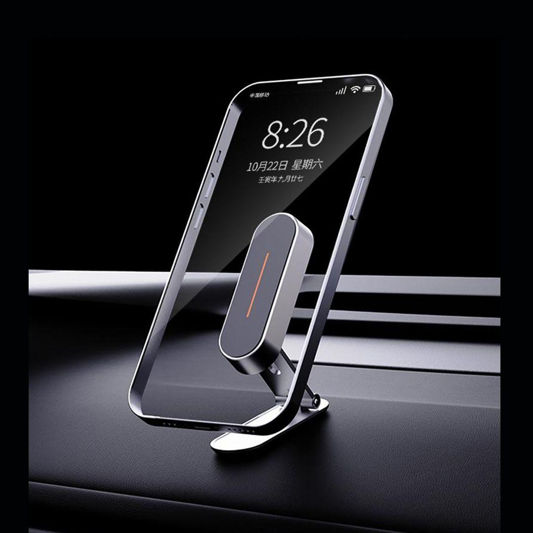 A magnetic car phone holder with strong grip and flexible control.