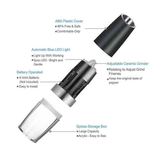 Automatic Pepper Grinder with Blue LED Light for a comfortable and advanced grinding experience.