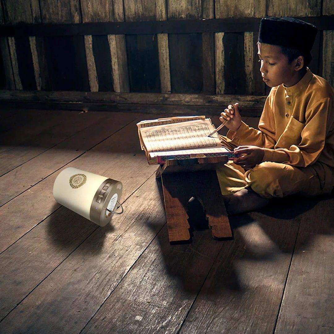 This Quran speaker offers a complete experience — listen to the Holy Quran in beautiful voices and enjoy soothing LED lighting that brings calmness and serenity to your space.