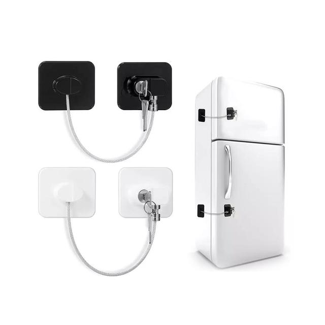 The lock has a strong, weight-bearing adhesive and comes with two keys to unlock it—inaccessible to children.