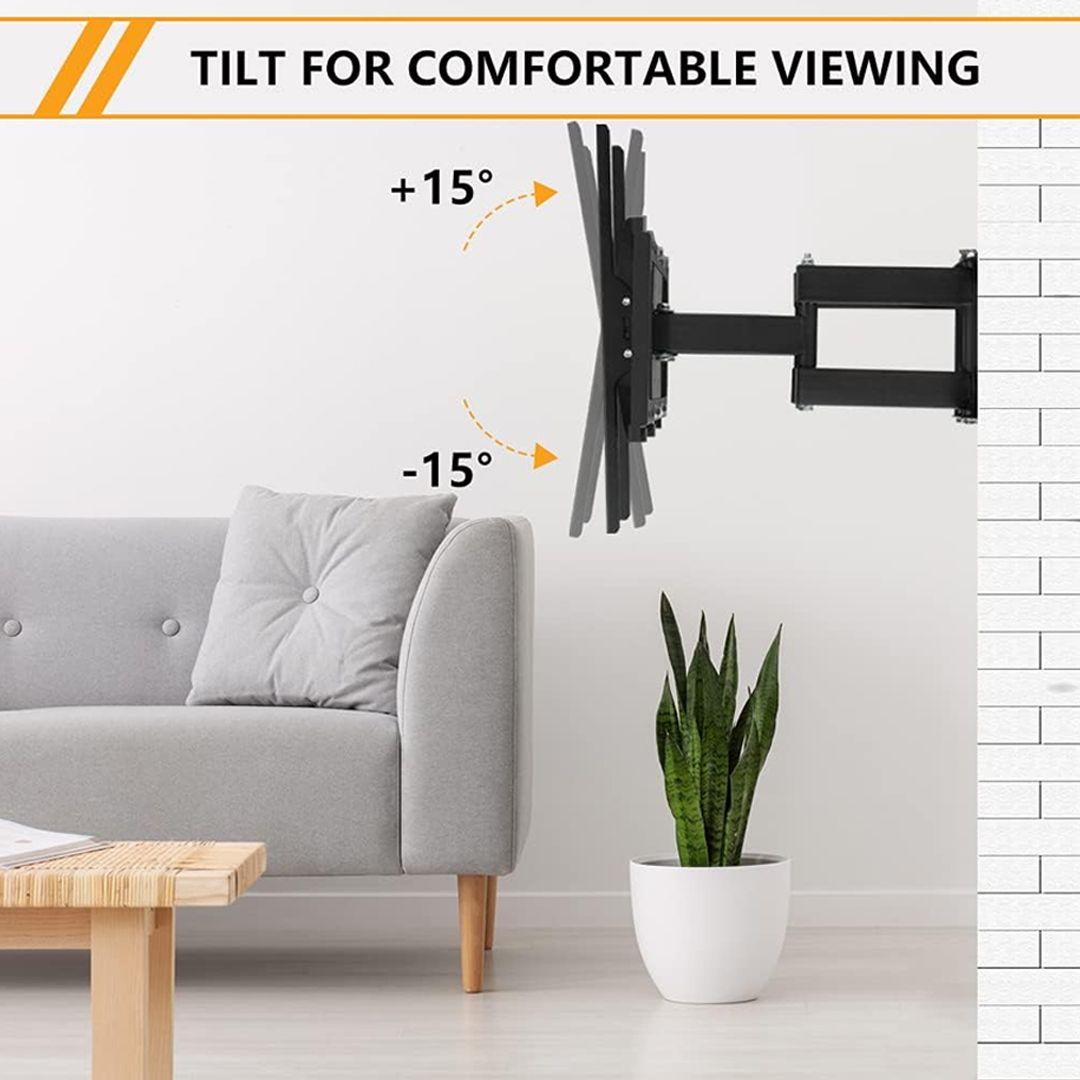 - Enjoy the perfect viewing angle from anywhere – the bracket moves and rotates easily, offering up to a 30° tilt. Perfect for living rooms, bedrooms, or offices.