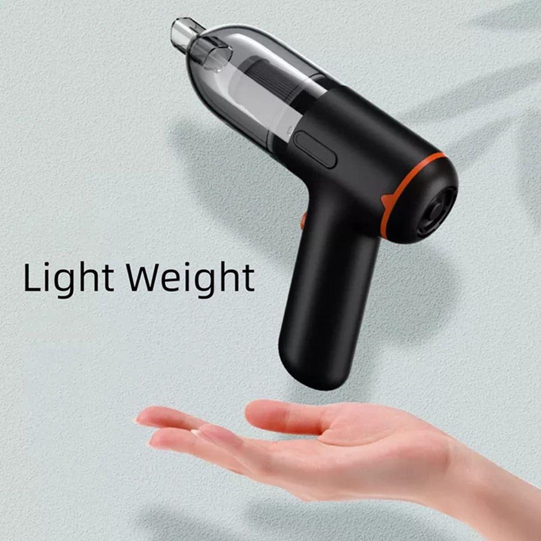 3. Lightweight: Our handheld vacuum cleaner weighs is about 0.38 kg. makes it easy to carry around the house with less risk of a fall than lugging a giant vacuum cleaner.