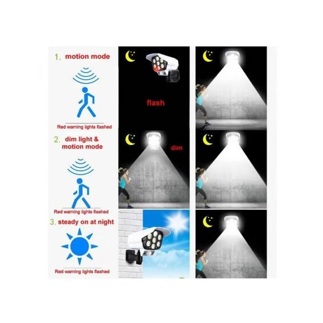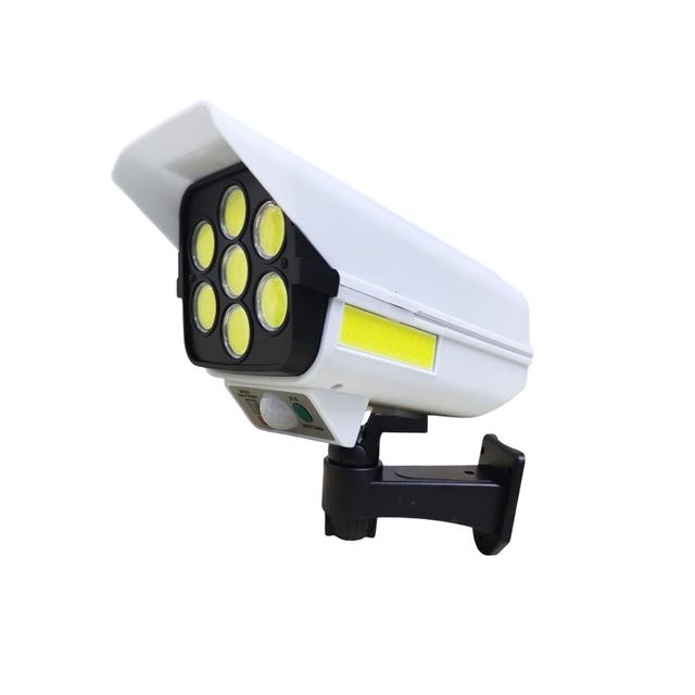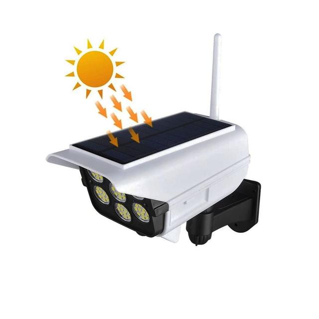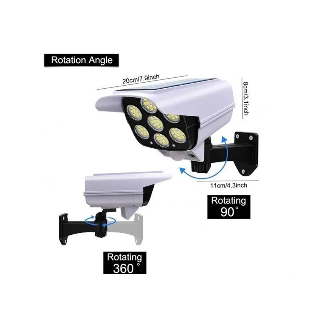 Want to feel safe even when you're away from home? This solar lamp, shaped like a surveillance camera, gives you a sense of comfort and protects your space. It detects any movement and immediately turns on a bright light, making everything clear and making anyone who approaches reconsider.
