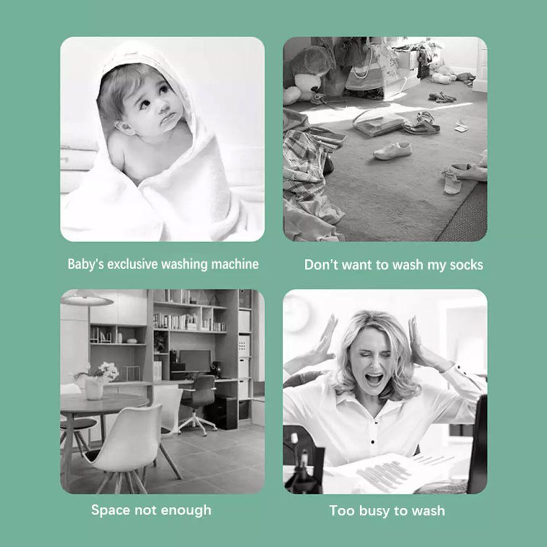 [Versatile]: The mini washing machine has high-frequency vibration and ultrasonic disinfection functions and is ideal for baby clothes, underwear, socks, towels, etc. In addition to the clothes cleaning and plaster, glasses, fruits, etc. are great