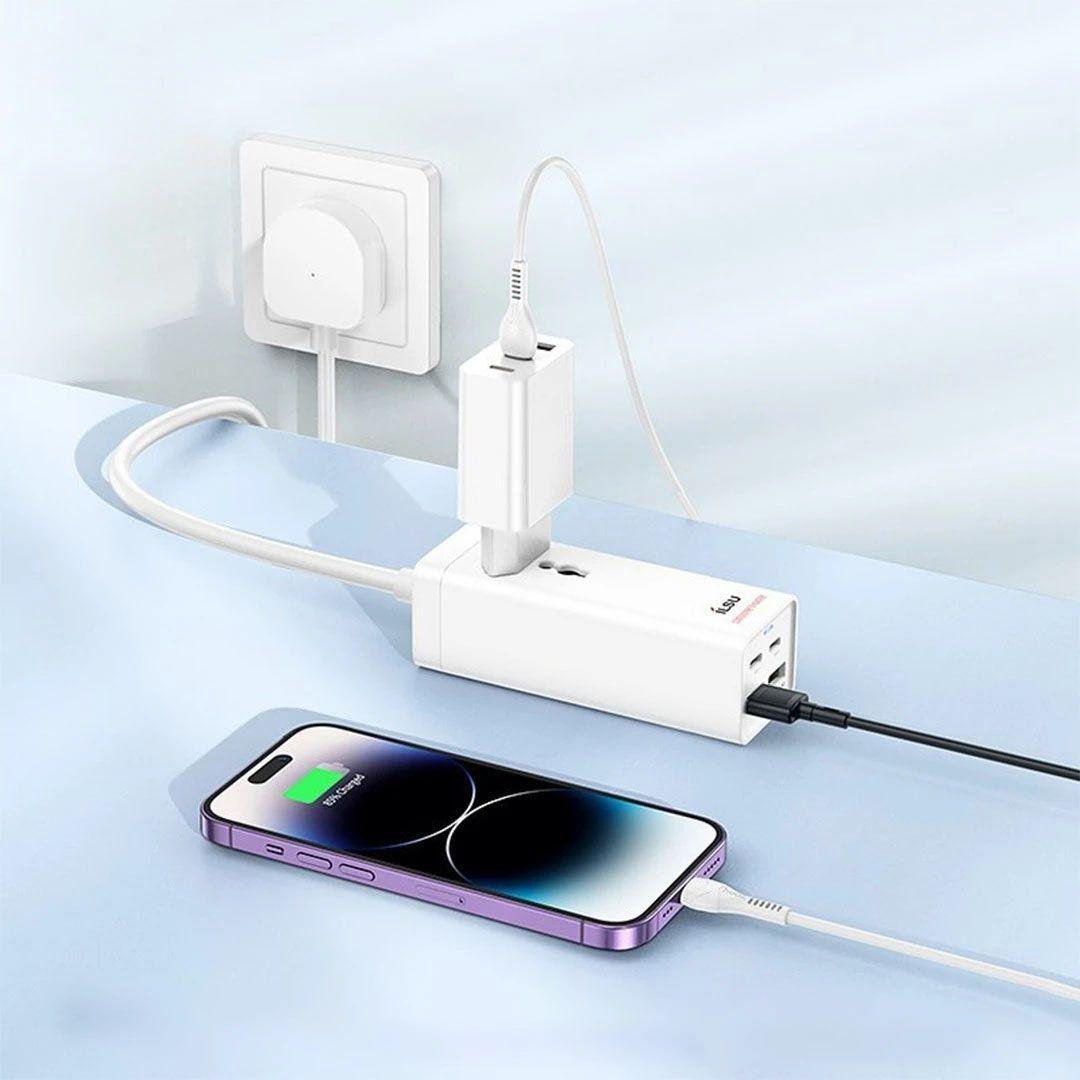 5 in 1 multi-port charger and adapter (3-port, 2 Type-C ports and 2 USB ports with smart charging technology) is ideal for home and office use.