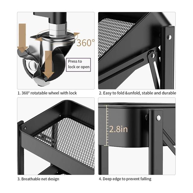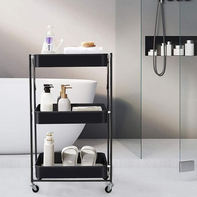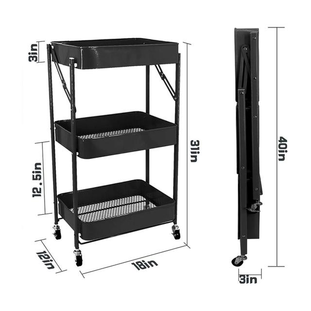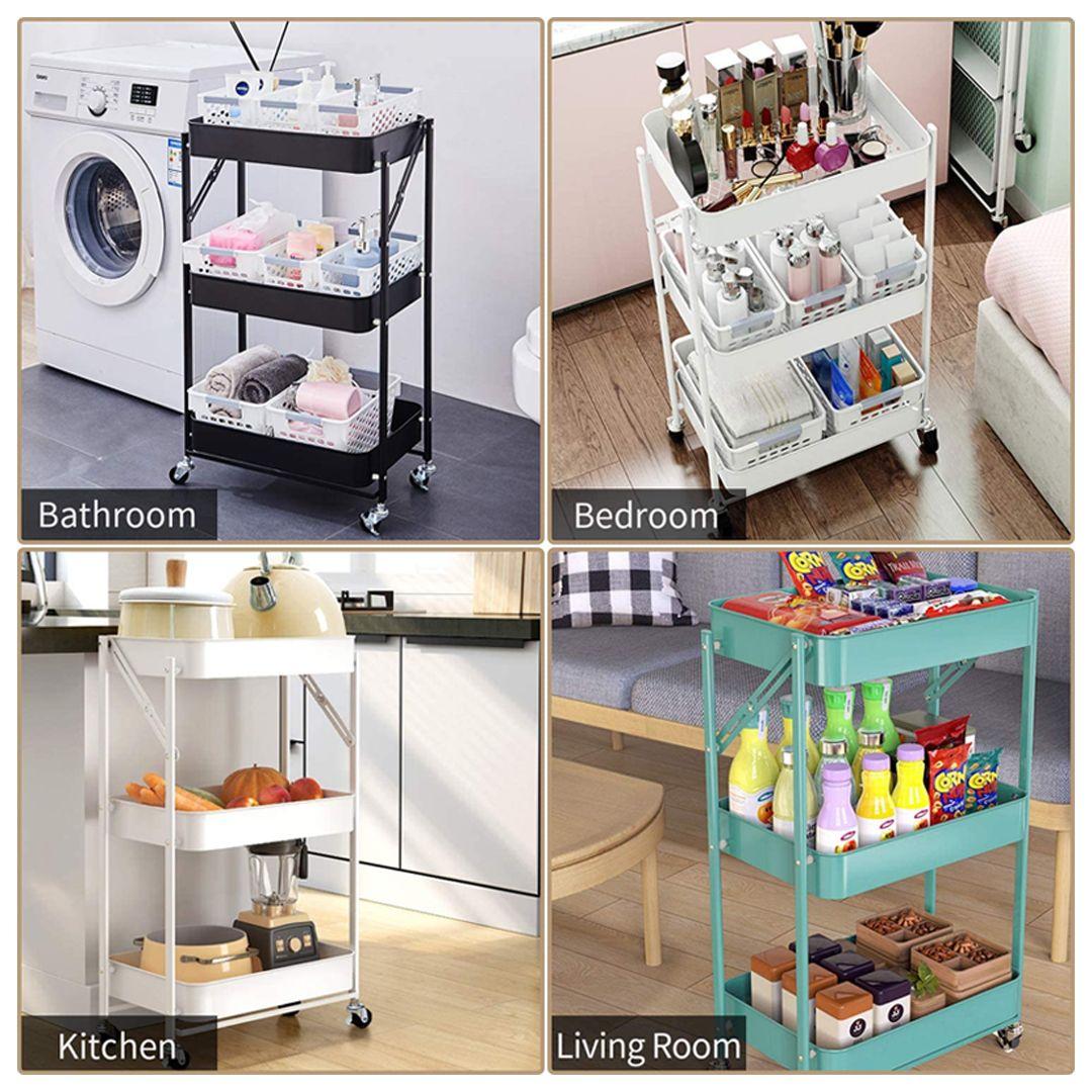 - Design: Three-tiered design for organizing everything from kitchen utensils, books, plants, and even cleaning supplies.