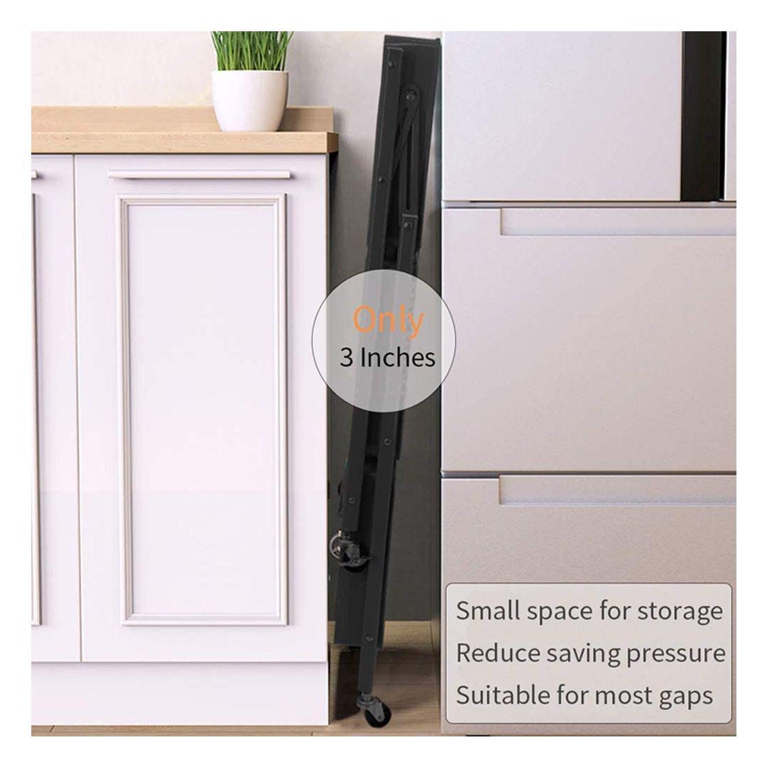 - Storage: The cart folds into a very compact size, making it easy to store in tight spaces like behind doors, under the bed, or next to the refrigerator.
