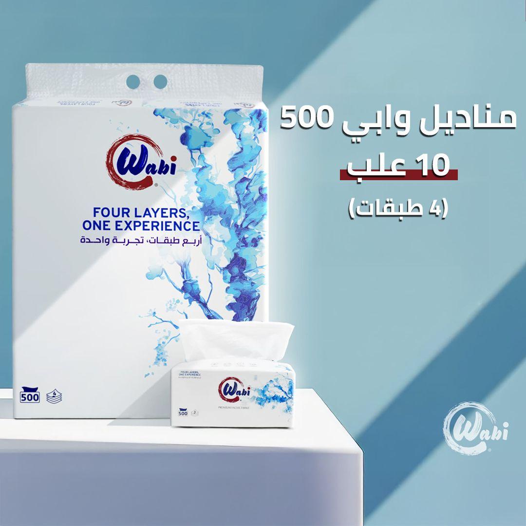 Wabi Tissues Pack (5 or 8 or 10 Boxes) of (300 or 500) Sheets of 4-Ply Tissues