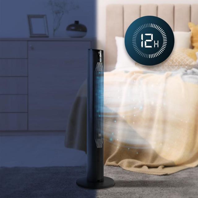 Set the 12-hour timer and forget about it. The fan will turn off automatically while you relax or sleep.