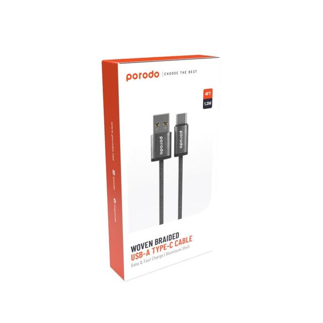 Porodo PD-WV3AC1-BK Woven 3A USB-A to Type-C Cable 1.2M