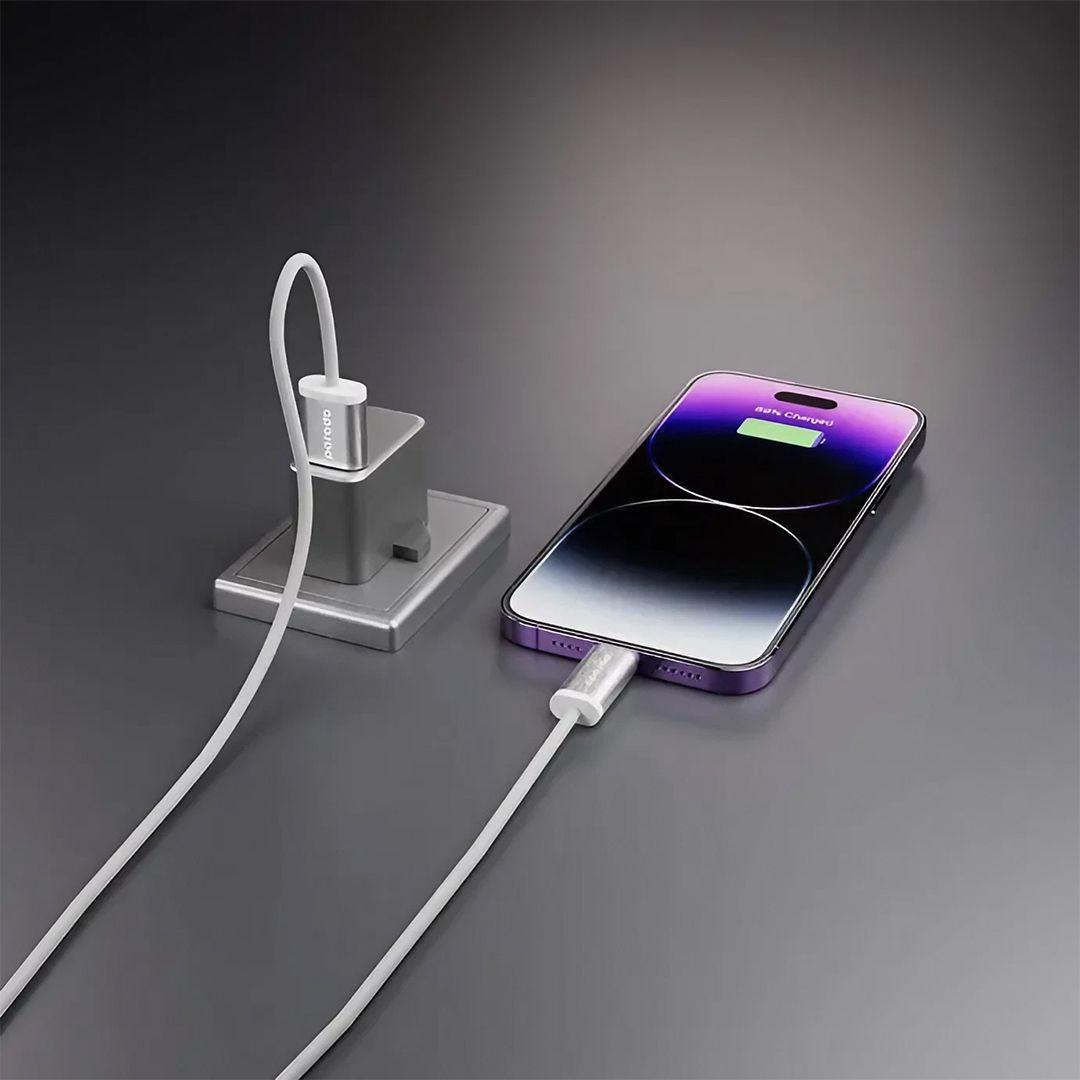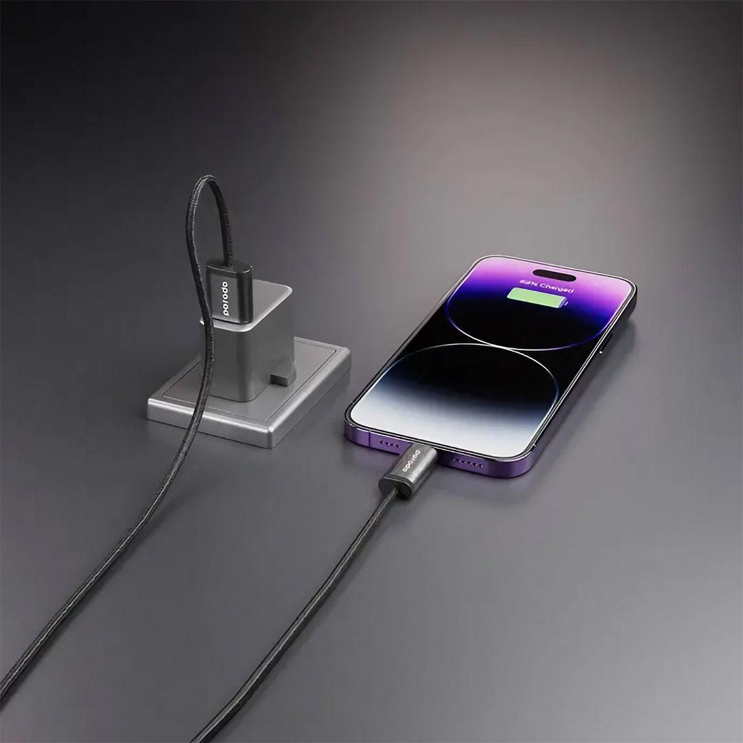Looking for a reliable cable that charges your iPhone fast and lasts long? The Porodo PD-W24AC2L Woven Cable, made with strong braided fibers and aluminum connectors, offers you fast charging and efficient data transfer. Available in classic Black or White colors.