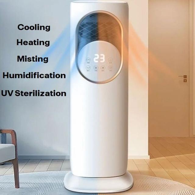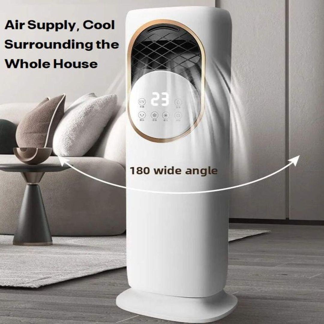 Don't worry anymore! We've brought you the magic solution that will change the concept of comfort at home. It's not just a fan or just an AC; it's an integrated device that performs 4 functions in one: cooling, heating, humidifying, and UV sterilization!