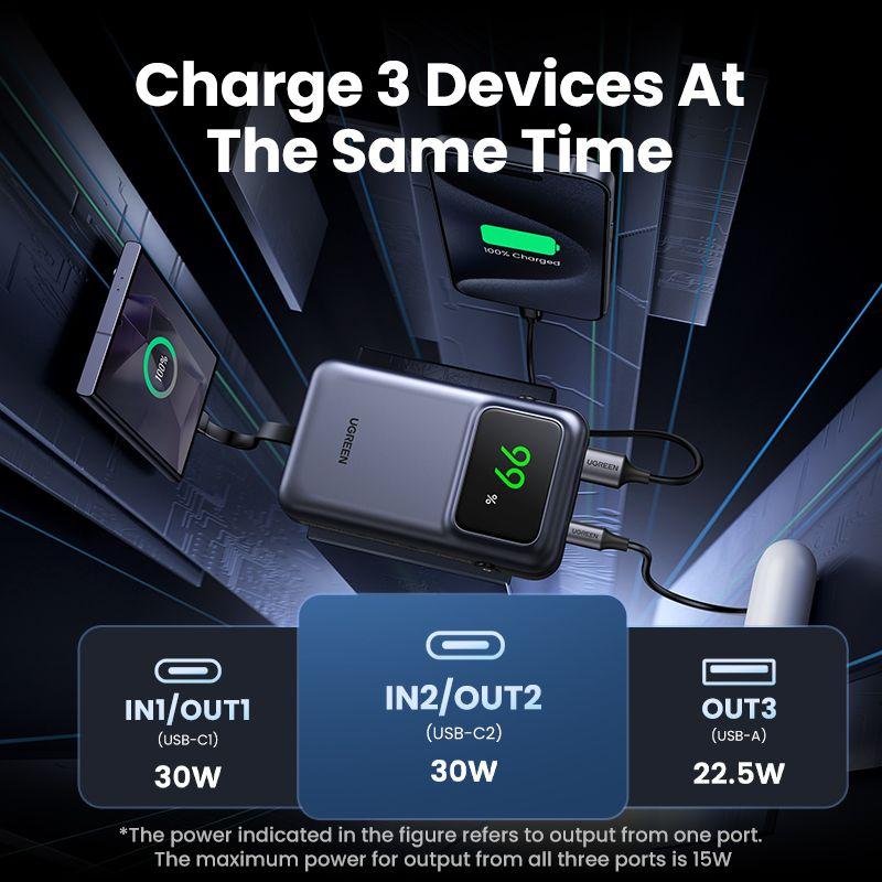 Integrated Design: Ugreen portable charger has a built-in 1.6ft USB C charging cable, making charging more convenient, also has both USB-A and USB-C interface, which can power 3 devices simultaneously, maximizing productivity Adorable