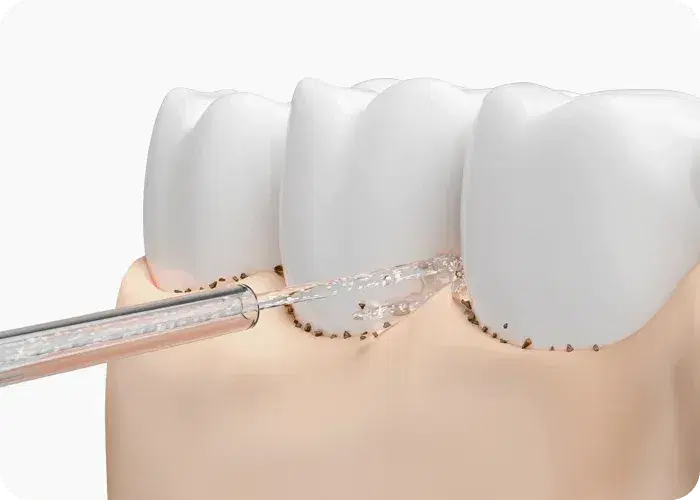 Deep‑cleaning between teeth unreachable by a brush → High‑frequency water pulses reach narrow gaps thoroughly.