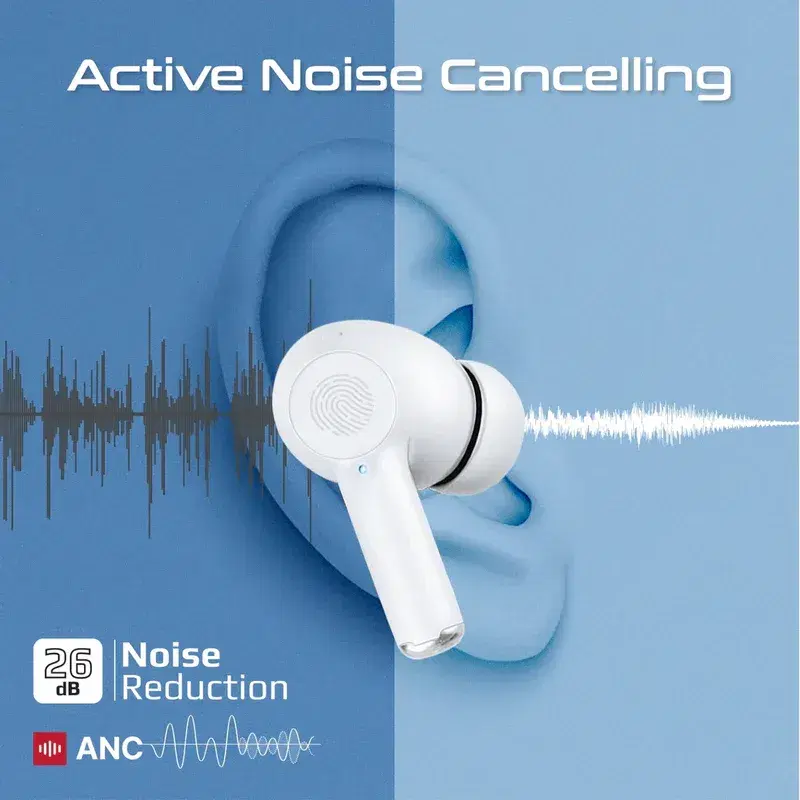 Experience a cascade of sound, texture, and detail with ProPods. These true wireless earbuds offer the best listening experience with IntelliTouch sensors and dynamic drivers that produce high-fidelity audio. ANC technology provides optimal noise cancellation in real-time, surrounding you with theater-like sound. The sleek design of these earbuds and 30-hour playback is the perfect solution for all-day comfort-driven usage. Built-in ENC microphones, amplify your voice, providing a crystal-clear calling and listening experience. Cancel out all manner of distractions and revel in music with ProPods.