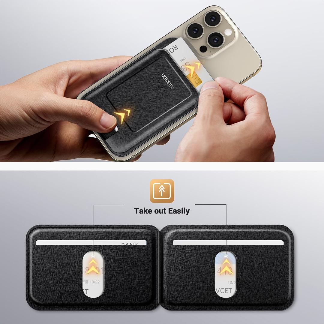 【Snap & Go 3-Slot Card Holder】With 3 independent card slots and a clear bifold design, the UGREEN magnetic wallet case is spacious enough to hold your essential cards and change. With the Magic MagSafe, you can easily attach this card holder to your phone and go without the bulky wallet.