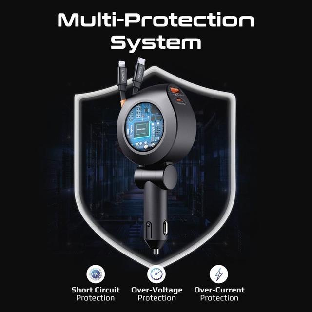 DriveGear‑R2 – 88W Multi‑Port Car Charger with Dual Retractable USB‑C & Lightning Cables