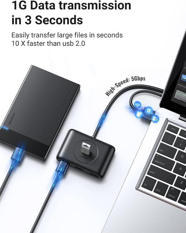 【UGREEN 4-PORT USB 3.0 HUB】Connects up to 4 USB devices to your PC or Laptop, such as external hard drives, USB flash drives, mouse, keyboard, USB headphone, speakers, memory cards, keyboard, mouse and much more USB devices, etc. It keeps you away from the trouble of plugging& unplugging repeatedly.