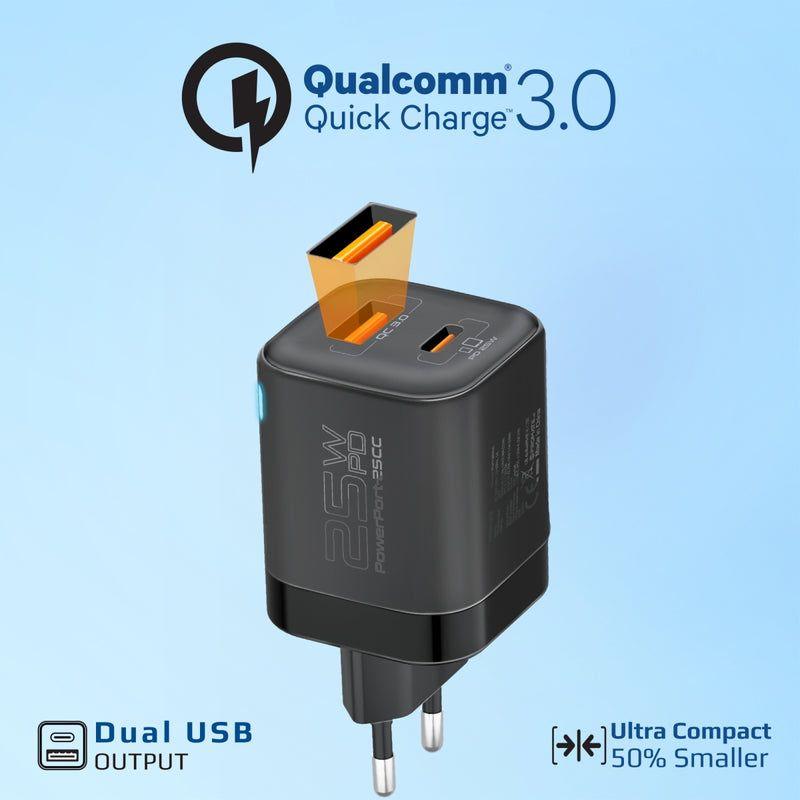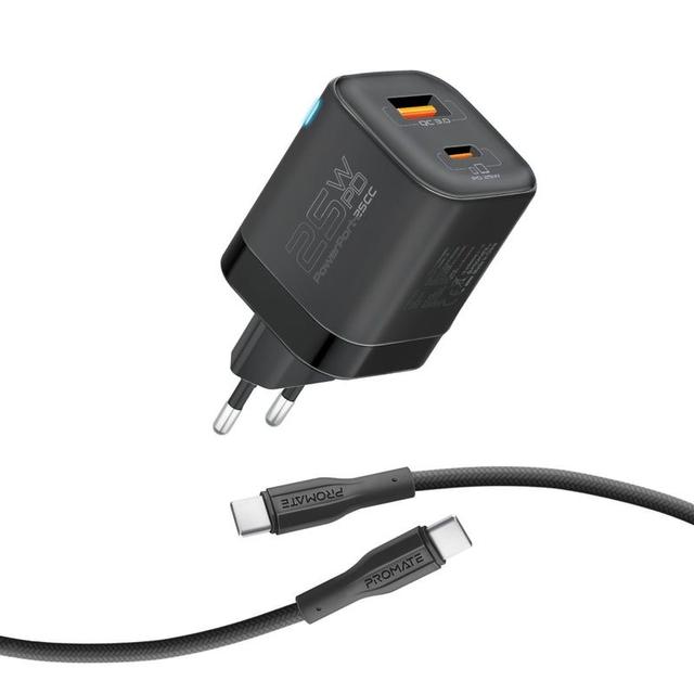 PowerPort‑25CC – Dual‑Port Wall Charger with 60W USB‑C Fast Charging Cable