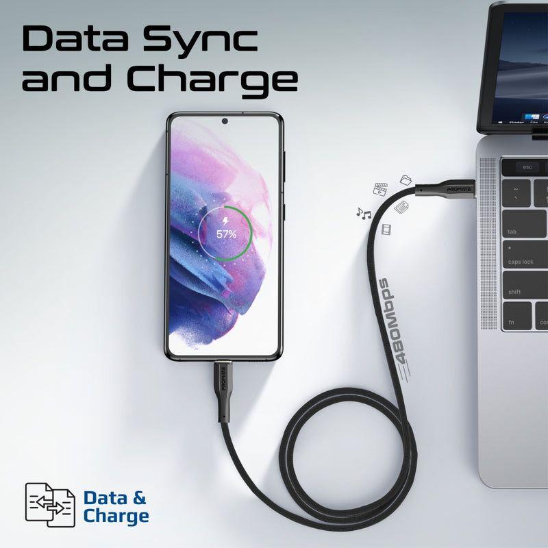 Included USB‑C cable (~1.2 m) supports up to 60W for fast device charging.