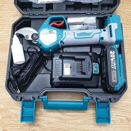 Complete kit: Includes battery, charger, sharpening stone, oil bottle, and protective cover.