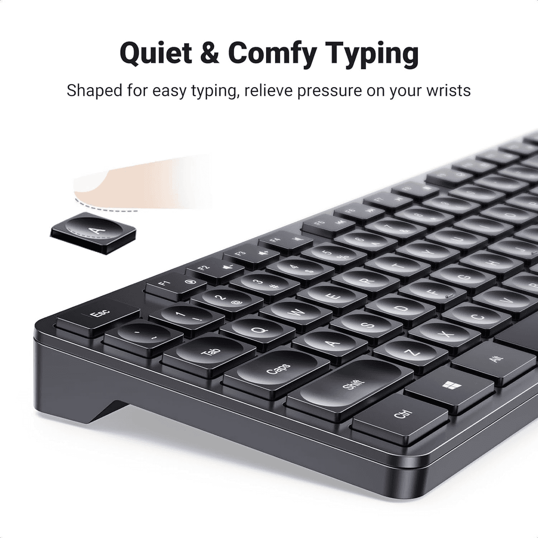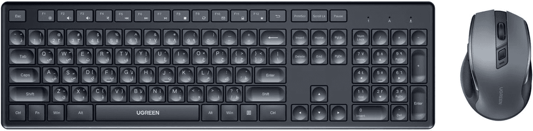 UGREEN Wireless Keyboard and Mouse Combo,2.4GHz Ergonomic Keyboard Mouse, Compact Silent Cordless Full Size Computer Keyboard, Mouse 5 DPI Levels up to 4000, for Computer, Laptop (Arabic)
