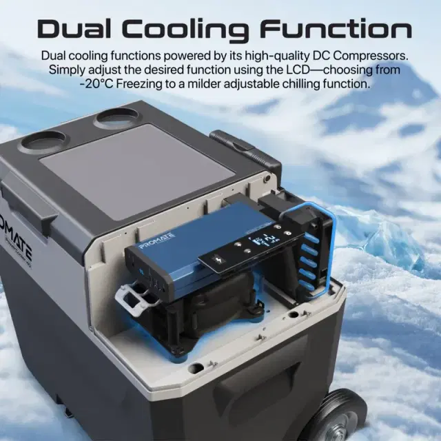 Dual‑Mode Cooling: Operates as a fridge or a freezer without needing ice.