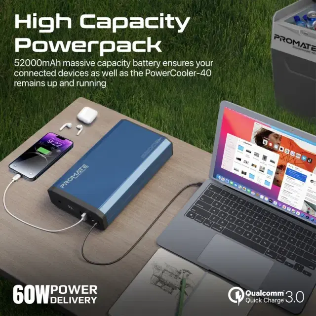 Promate PowerCooler‑40 40 L Portable Outdoor Refrigerator with 52,000 mAh Power Pack