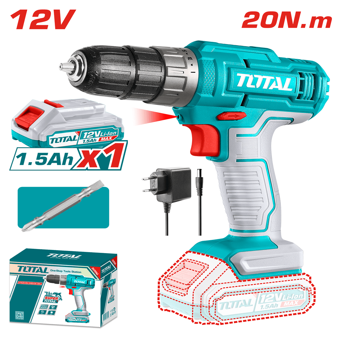 Total 12V Cordless Drill TDLI1218 with Battery — Lightweight and Efficient for Home & Workshop