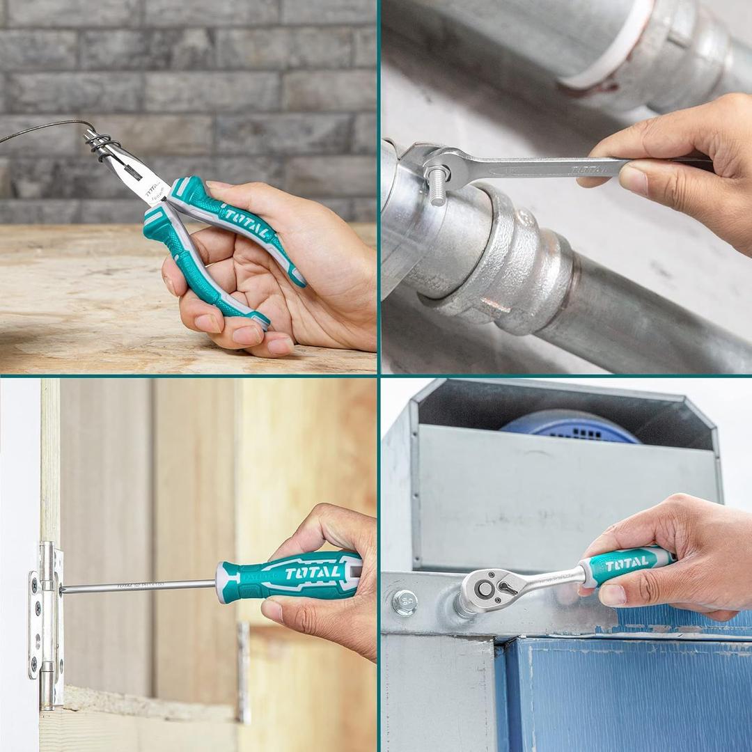 Includes hex keys, screwdrivers, wrenches, spark plugs, pliers, T-bar and ratchet wrenches, as well as hex and bit sockets, to meet all daily and professional needs.