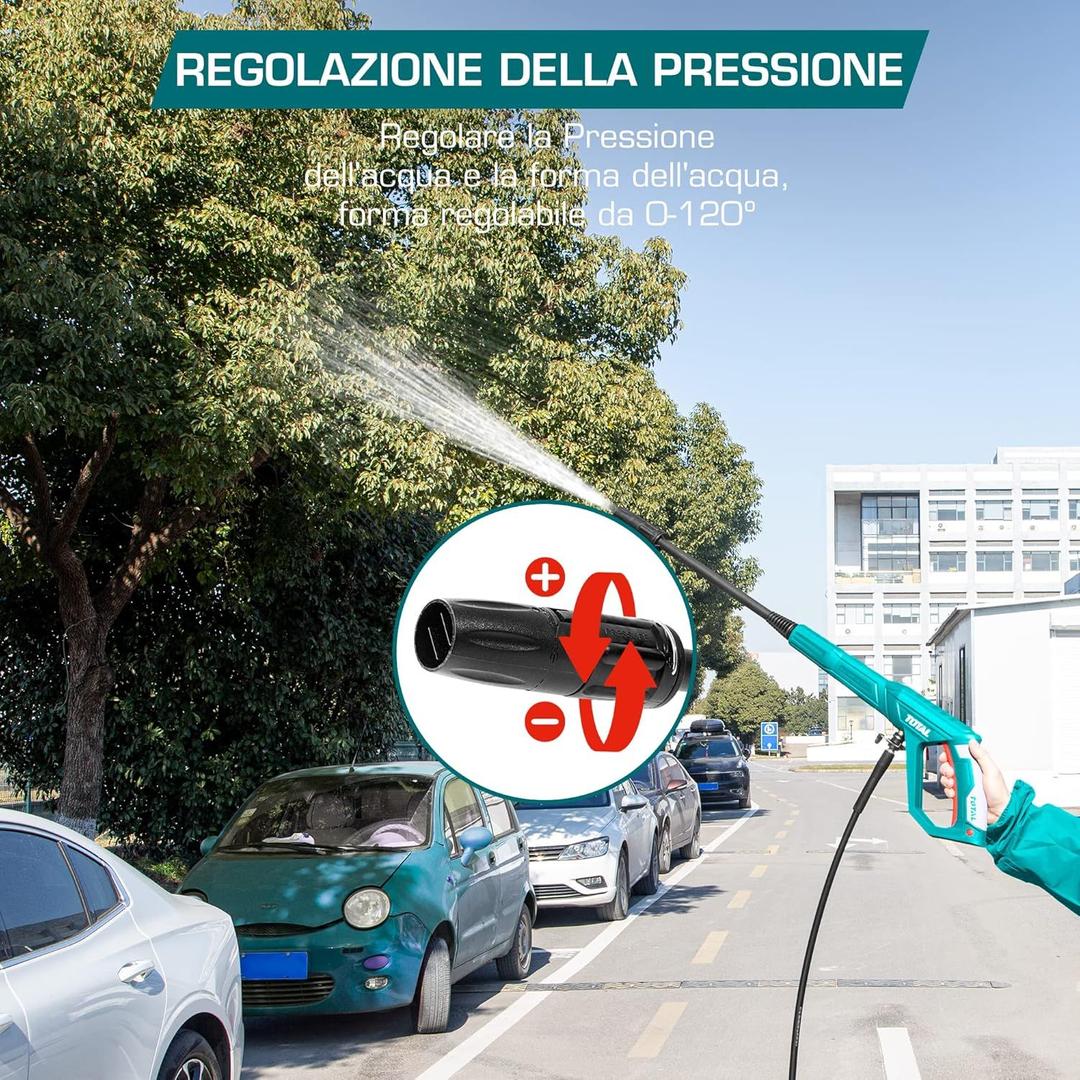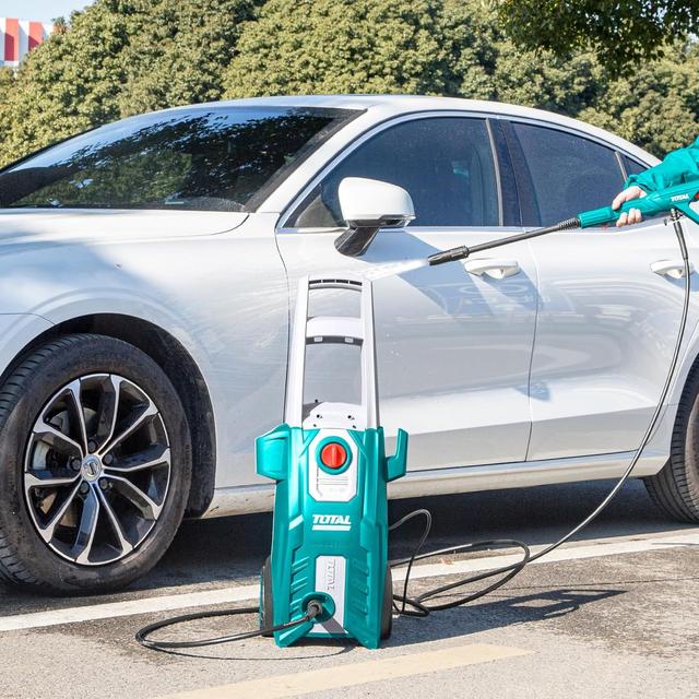 Powerful cleaning with up to 150 bar pressure. Easily removes tough dirt from floors, cars, walls, and outdoor furniture with high efficiency.