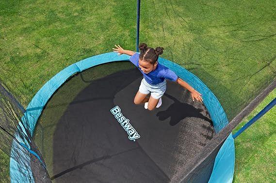 Give your kid hours of laughter and fun from the comfort of your own backyard with the long-lasting and durable Bestway® Xtreme Air™ 10 ft. Trampoline. Perfect for kids ages 6 and up, the large trampoline includes a no-gap, sewn enclosure net with a zippered and buckled entry, and foam-padded enclosure poles, making it as secure as it is fun. All-in-One Setup: The Xtreme Air trampoline has all you need for a complete trampoline, including an easy assembly kit that includes Bestway’s patent-pending QuickSpring™ trampoline tool for hassle-free spring installation with a dual action wrench handle, plus spring-pin and bolt connections on the enclosure poles for simple setup. Made to Last: Built from powder-coated galvanized steel to shield the trampoline's frame from rust and corrosion, the Xtreme Air trampoline is durable and ready to handle the outdoor elements season after season. Featuring a weather-resistant enclosure net, spring pad and jumping mat, you and your family will enjoy making memories together around the trampoline. Give your kids the ultimate way to get their energy out and have even more fun every day with the Bestway Xtreme Air 10 ft. Trampoline!