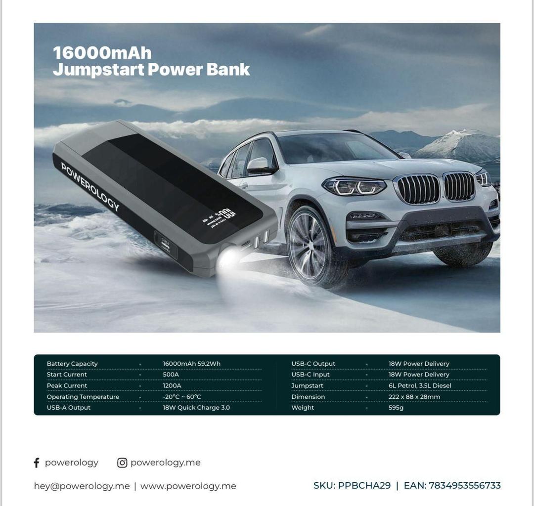 Powerology 16000mAh JUMPSTART POWER BANK -PPBCHA29