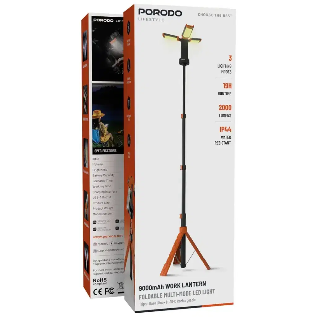Porodo Lifestyle PDLFSTXQZ10OR 9000mAh Work Lantern Foldable