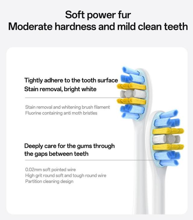 Precision Bristles: Ultra-fine 0.02mm tapered bristles for effective cleaning and whitening.
