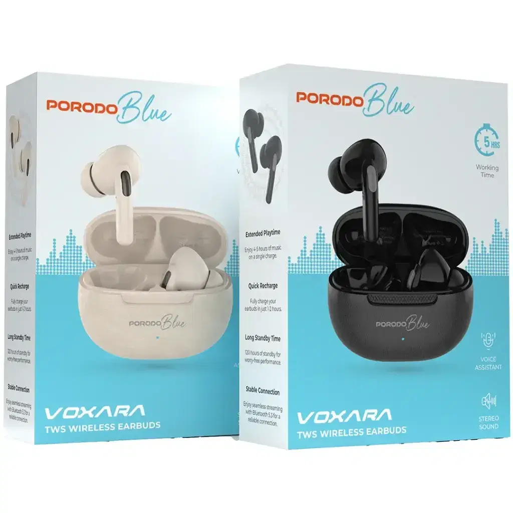 With true wireless stereo sound, the Porodo Blue Voxara TWS Wireless Earbuds turn out to be one of the best listening gadgets. The quality of sound is very high due to Bluetooth 5.3, which the manufacturer employed, while the connection is very stable and seamless. Due to the USB-C fast charging feature, 1-2 hours will be sufficient to charge these earbuds, which are very generous with their 5-hour battery life. Their 120-hour standby time ensures they are ready when you are. For the comfort of the user, the earbuds, which offer a compact design with a secure fit, are constructed perfectly for everyday use, whether you commute, work out, or relax at home. Enjoy crystal-clear sound and never worry about running out of battery during your day with the Porodo Voxara TWS Earbuds.