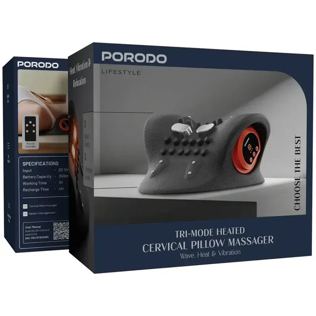 Porodo Lifestyle Tri-Mode Heated Cervical Pillow Massager with Wave Heat & Vibration - PDLFSTBZ02BK