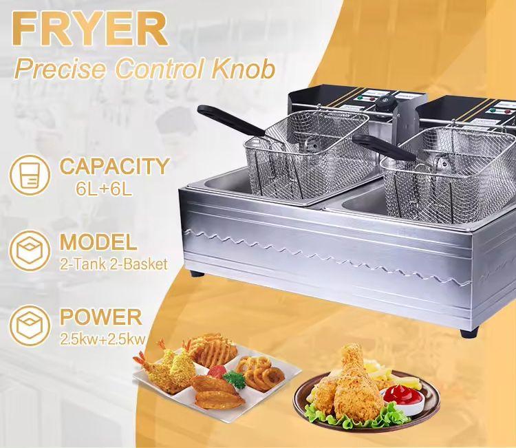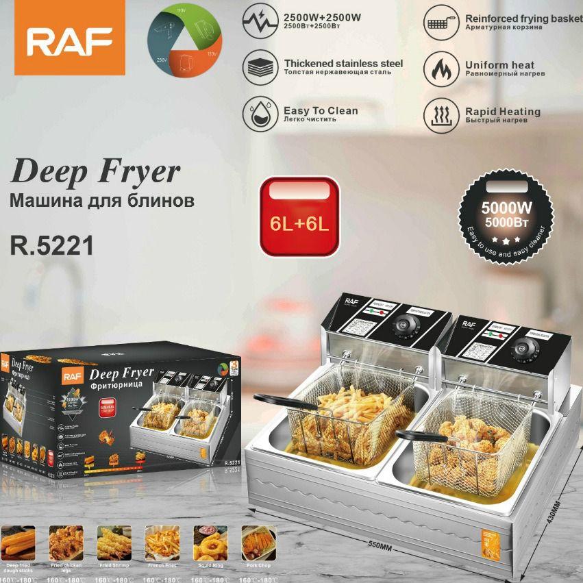 RAF Double Deep Fryer 6L + 6L, 5000W Stainless Steel Commercial Fryer