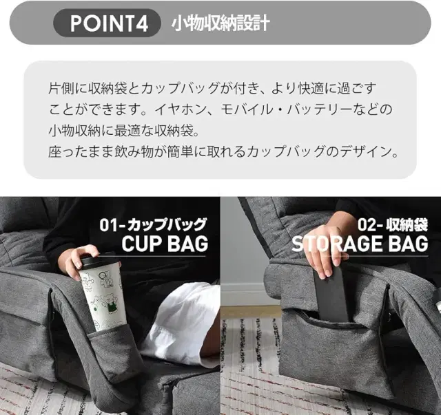 Side Storage Pockets – Keep headphones, remotes, or phone battery within reach