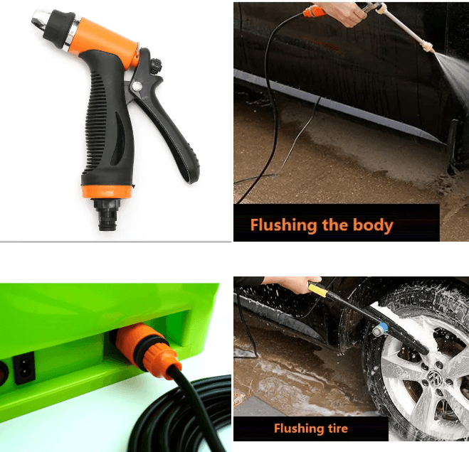Powerful and efficient high-pressure water pump for cars and bikes.