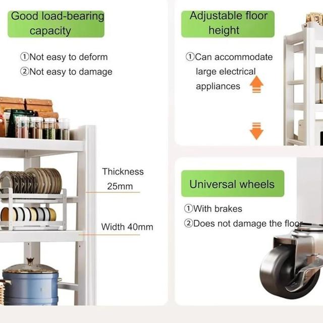 This high-quality organizer combines functionality and elegance, helping you organize your kitchen tools professionally. It features a strong and durable metal frame designed to last, with spacious shelves ideal for storing small appliances, cooking utensils, spice jars, or canned goods. It also comes with 360° rotating wheels for easy movement around the kitchen, giving you perfect organization and extra space to make your kitchen more organized and beautiful every day.