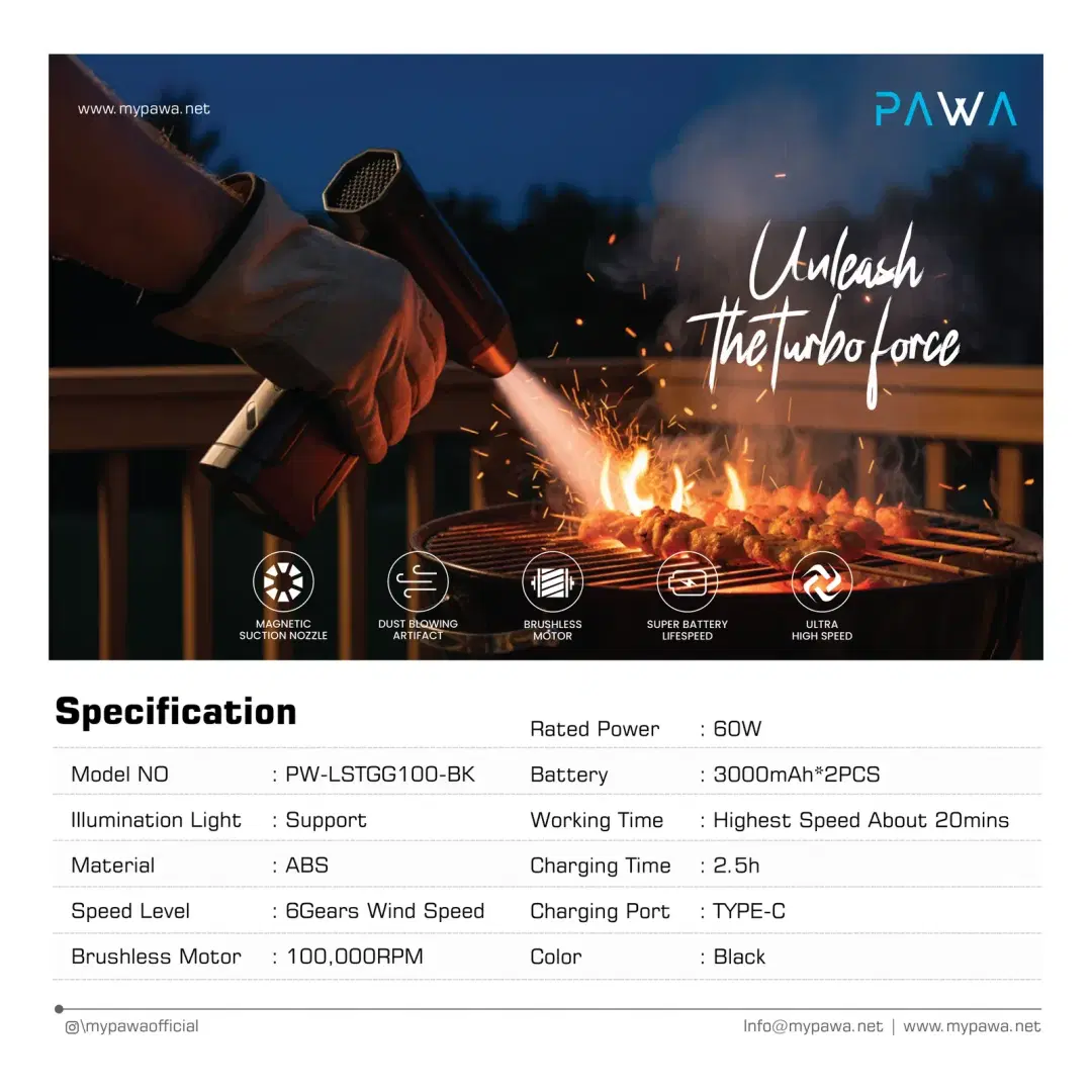 Pawa PW-LSTGG100-BK Turbo Fan Blower with LED Light