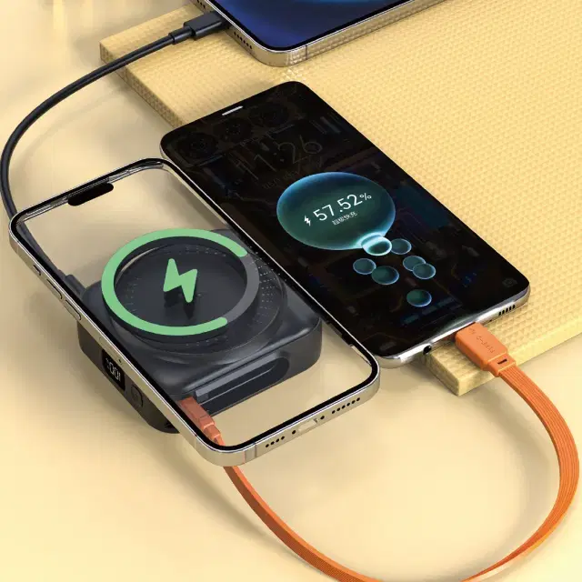 Easily charge your phone wirelessly by simply placing it on the power bank.