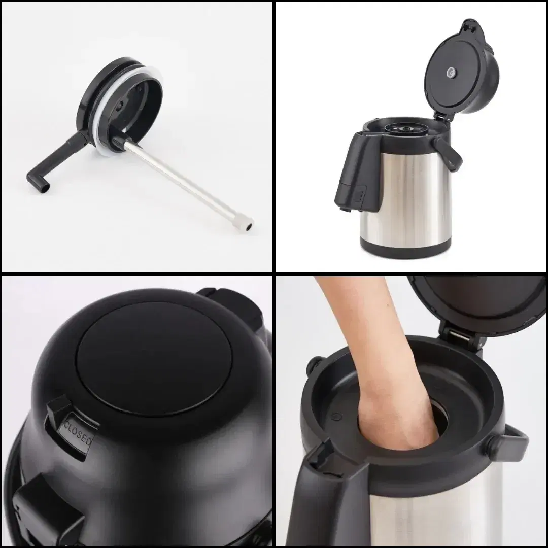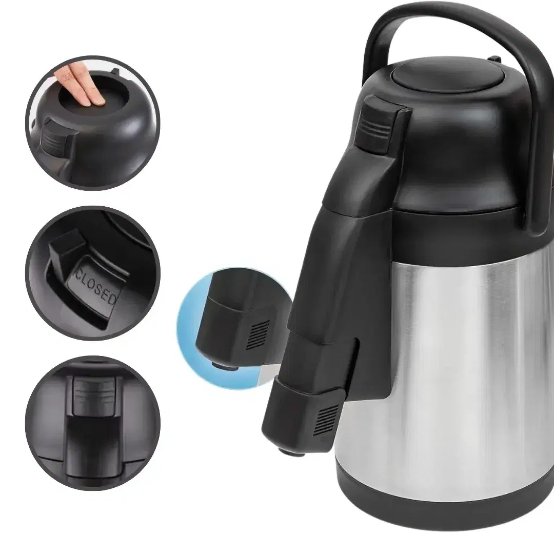 Insulated glass liner, stainless steel body, airtight lid and extendable head pump