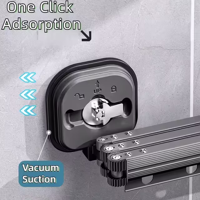 Foldable Clothes Hanger Without Drilling, Retractable Aluminum Drying Rack with Suction Cups