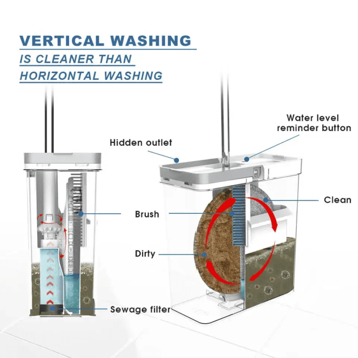 A practical cleaning kit with a 360-degree rotating mop and self-wringing bucket, for easy and efficient floor cleaning.